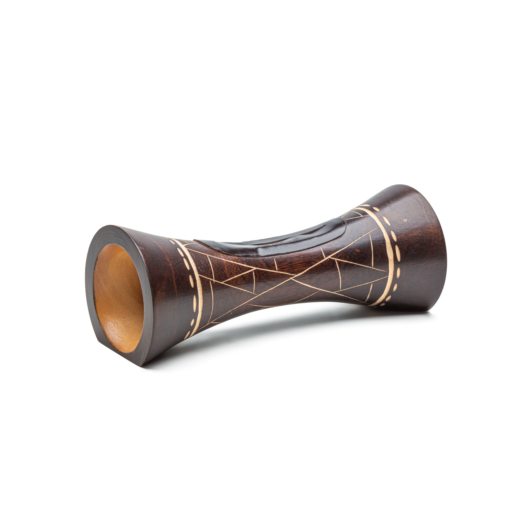 Grâce aux propriétés acoustiques du bois de manguier, le son de ton téléphone est amplifié sans électronique ni électricité